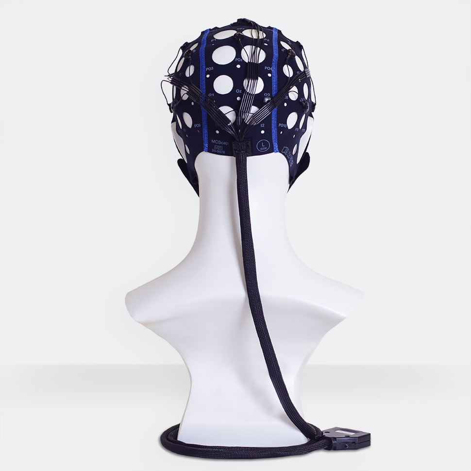 Electrode cap PROFESSIONAL is the textile cap with pre-installed Ag/AgCl sintered MCScap‑NTC electrodes with DB‑25M common connector. The electrode cap is designed for use with electroencephalographs and biological signal amplifiers.