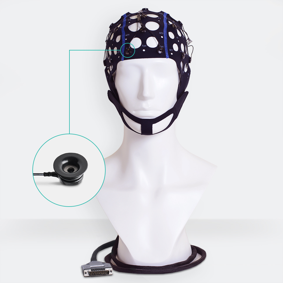Textile cap with preinstalled Ag/AgCl sintered MCScap‑NTC electrodes with DB‑25M common connector.