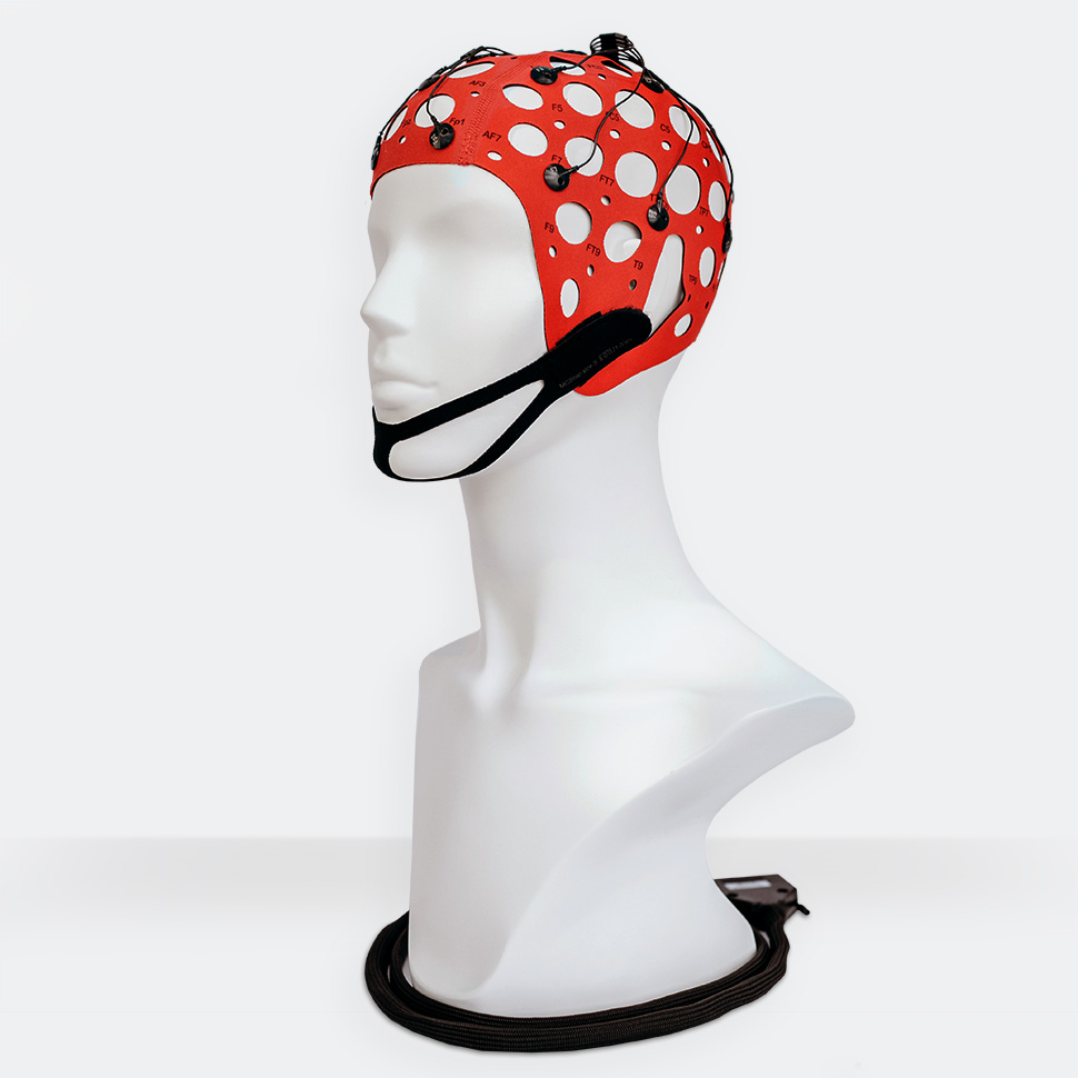 Textile cap is made of elastic material, preserving the shape and size. The cap provides the exact position of the electrodes on the head without additional measurements and adjustments. Large holes are provided for ventilation and access to the electrodes and patient’s skin.The cap is fixed on the head with the chin or chest belt. The caps are marked according to the 10-10 system. Size identification is carried out by the color of the material or by the color of the seam.