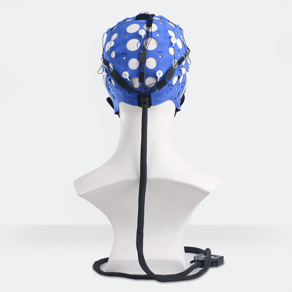 Electrode cap CLINIC is the textile cap with pre-installed Ag/AgCl MCScap‑C electrodes with DB‑25M common connector. The electrode cap is designed for use with electroencephalographs and biological signal amplifiers.