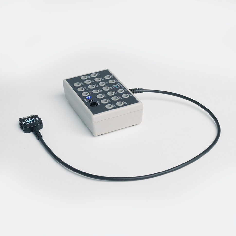 Electrode adapter for connecting up to 22 electrodes with TouchProof 1.5 mm DIN 42 802‑ST connectors to NeoRec 21 amplifier.