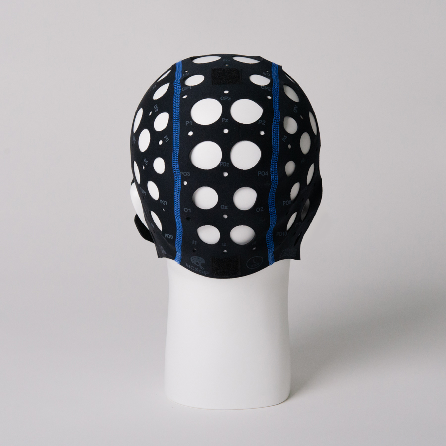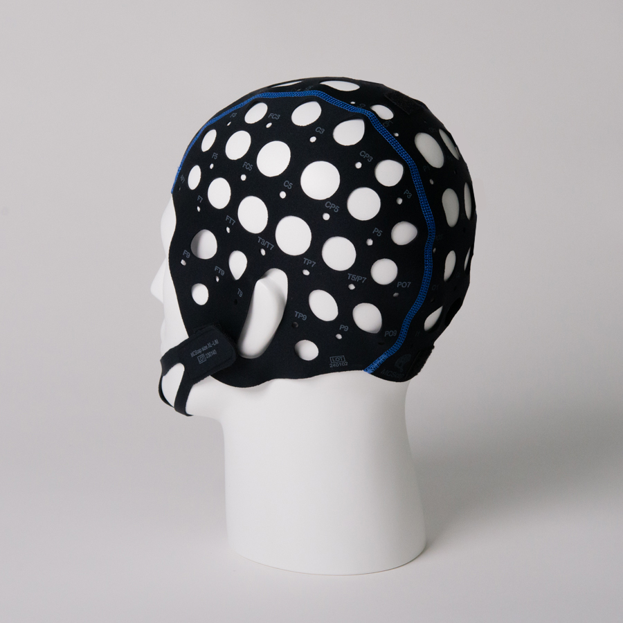 MCScap 10‑10 black is a textile cap marked according to the international 10-10 system. The cap is designed for use with MCScap-C/TC/T/NT/NTC/NTH/StTC/StNT electrodes. Textile cap is made of elastic material, preserving the shape and size. The cap provides the exact position of the electrodes on the head without additional measurements and adjustments. Large holes are provided for ventilation and access to the electrodes and patient’s skin. The cap is fixed on the head with the chin or chest belt. Size identification is carried out by the color of the seam.