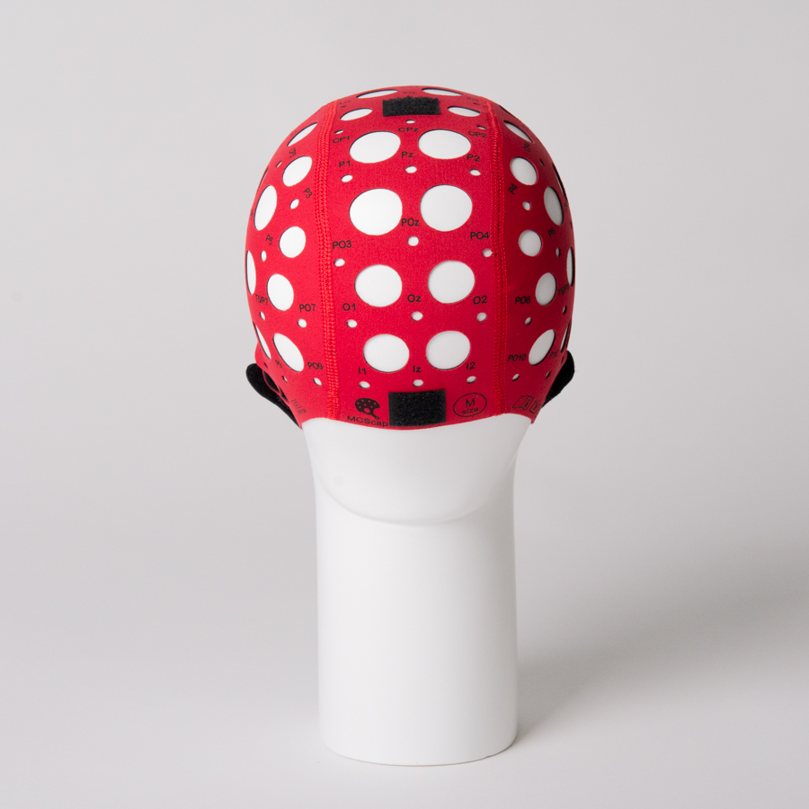 MCScap is a textile cap marked according to the international 10-10 system. The cap is designed for use with MCScap-C/TC/T/NT/NTC/NTH/StTC/StNT electrodes. Textile cap is made of elastic material, preserving the shape and size. The cap provides the exact position of the electrodes on the head without additional measurements and adjustments. Large holes are provided for ventilation and access to the electrodes and patient’s skin. The cap is fixed on the head with the chin or chest belt. Size identification is carried out by the color of the material.